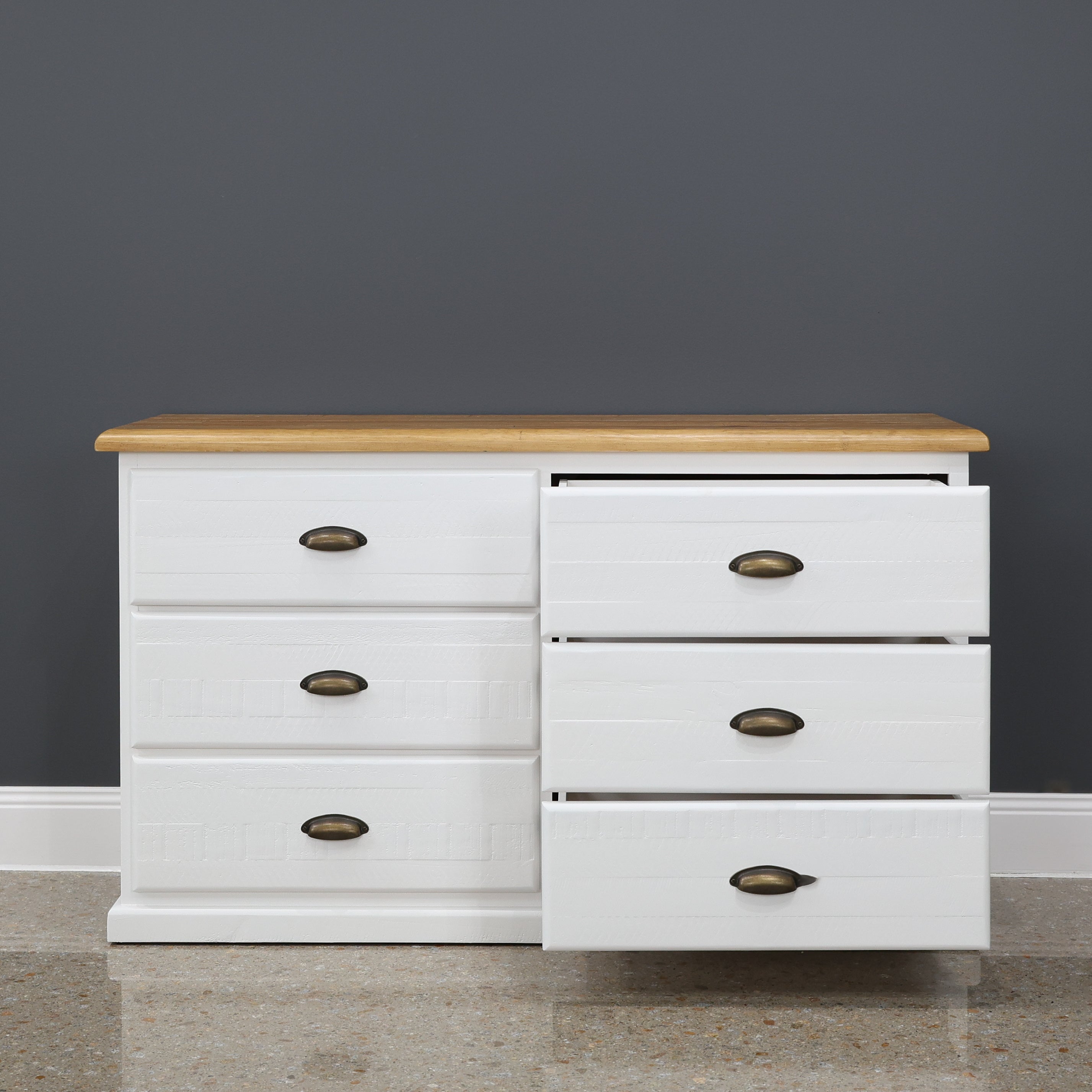 The Springhurst Dresser features a timeless design with antique-style metal handles that add vintage charm. Its six spacious drawers offer practical organisation in a classic layout, while the solid wood construction ensures lasting durability. Perfect for traditional, rustic, or farmhouse interiors, this dresser brings sturdy elegance and character to any space.