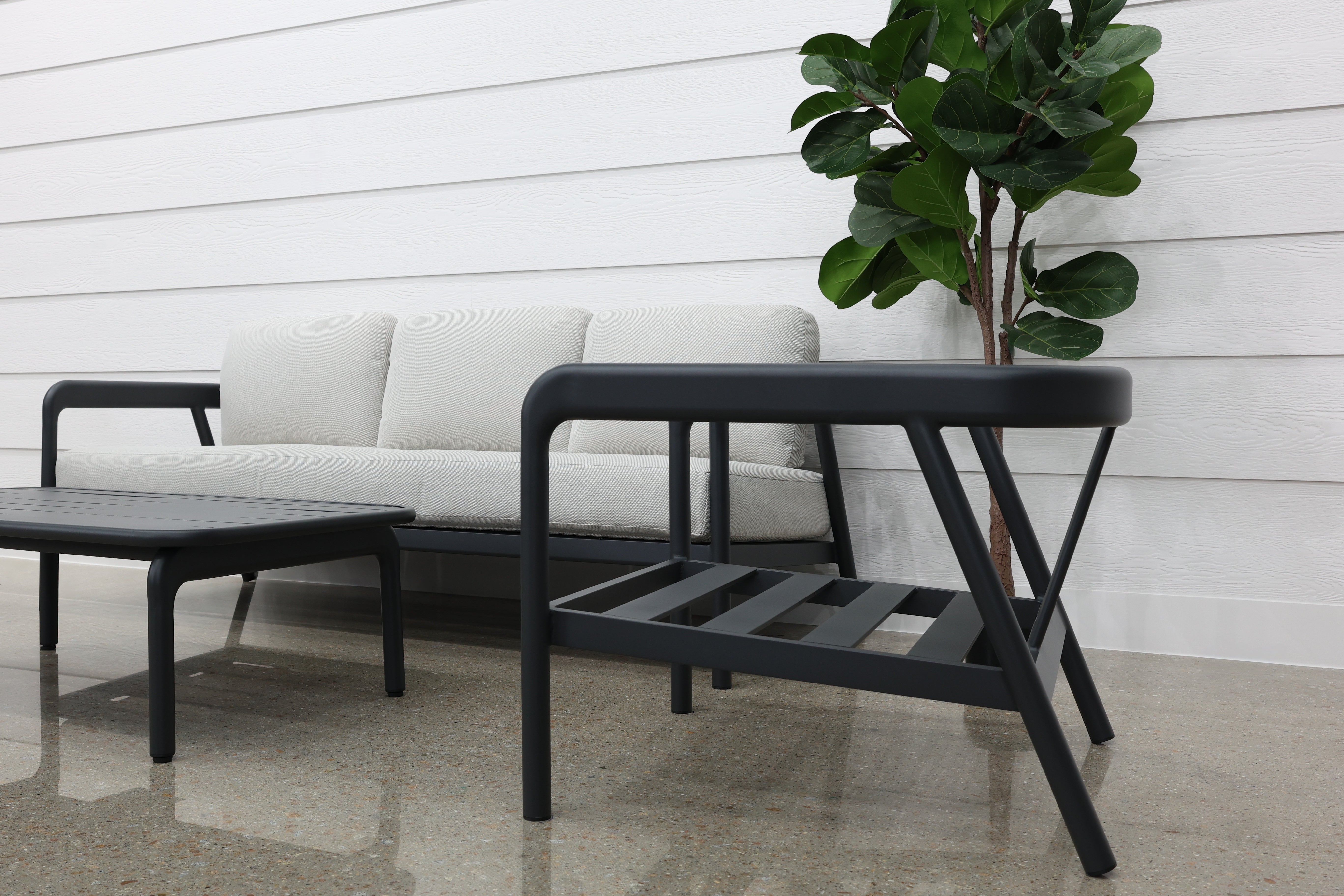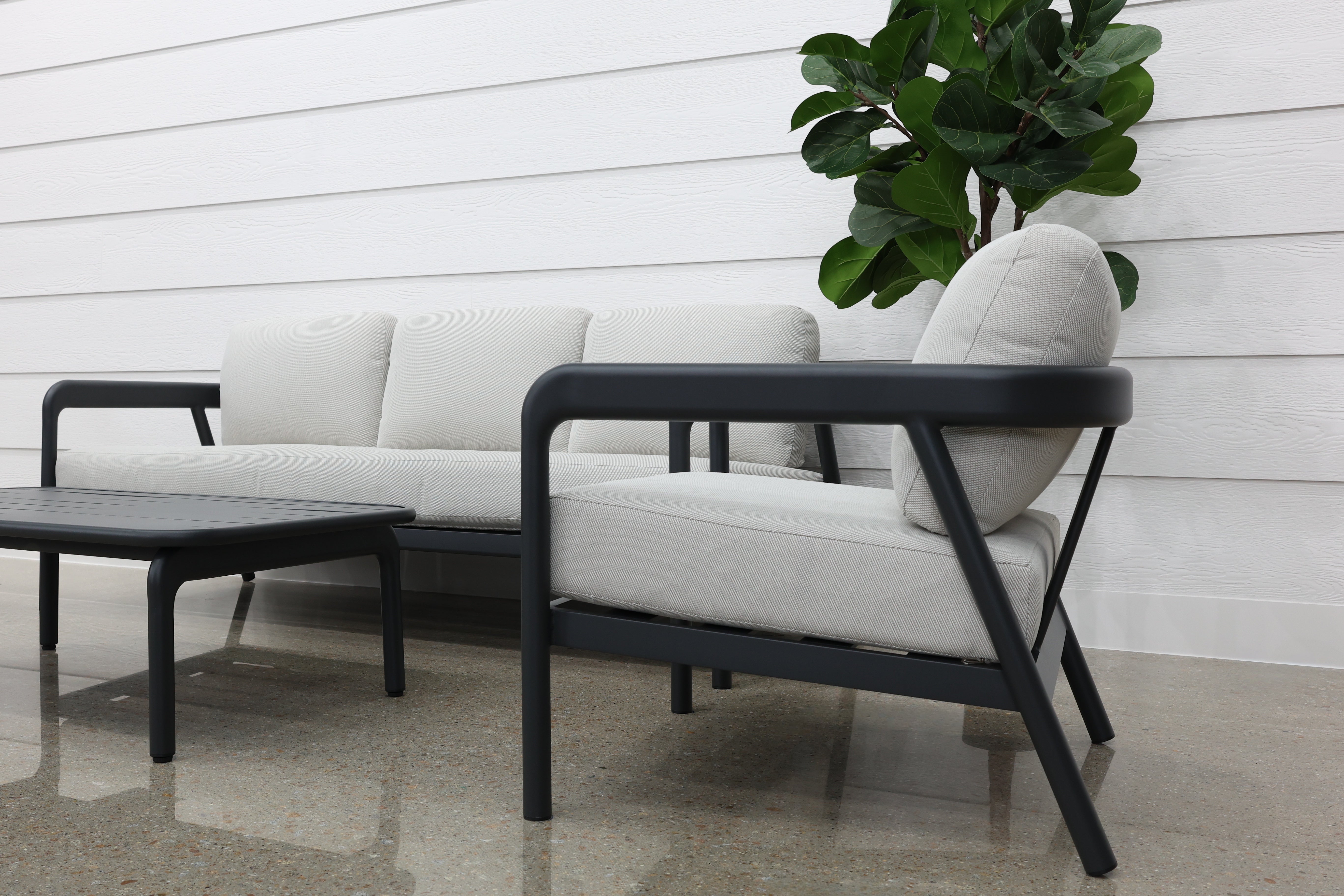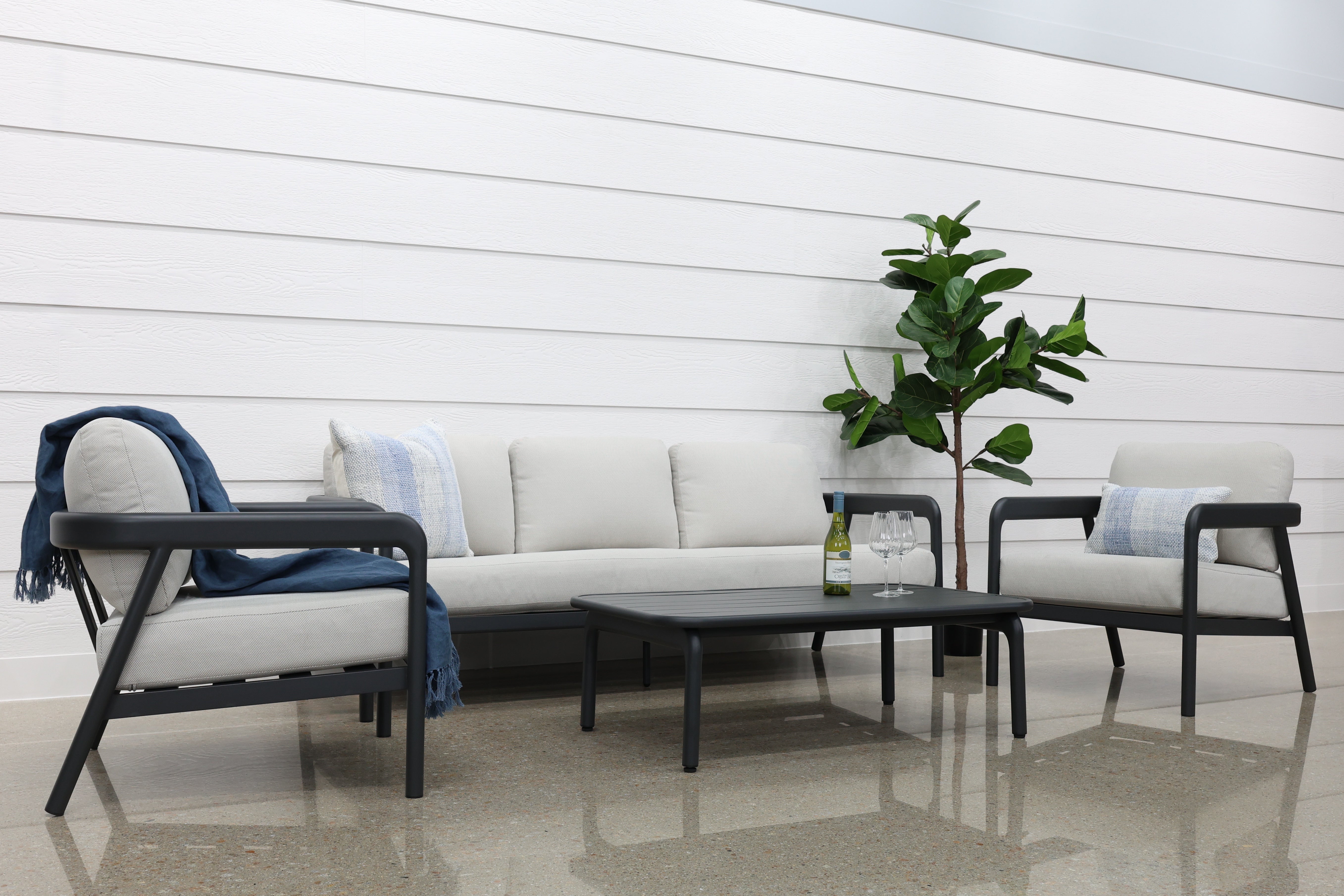 Bring coastal elegance to your outdoor space with the Sunshine Coast 4 Piece Outdoor Lounge Set. Available in both Charcoal and White this set is the perfect addition to elevate your outdoor living. Featuring comfortable seating, a slatted coffee table and a stylish modern coastal aesthetic.