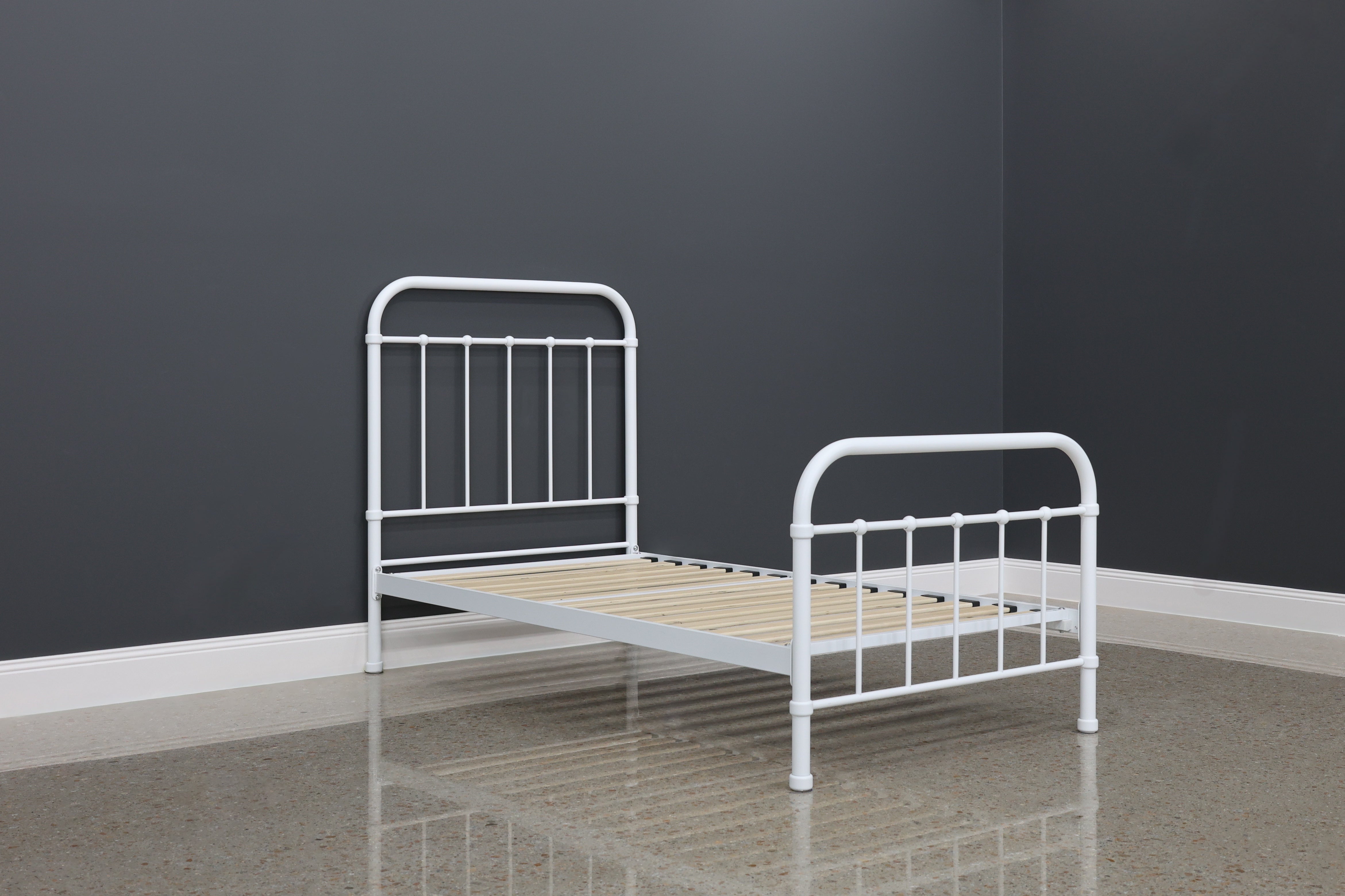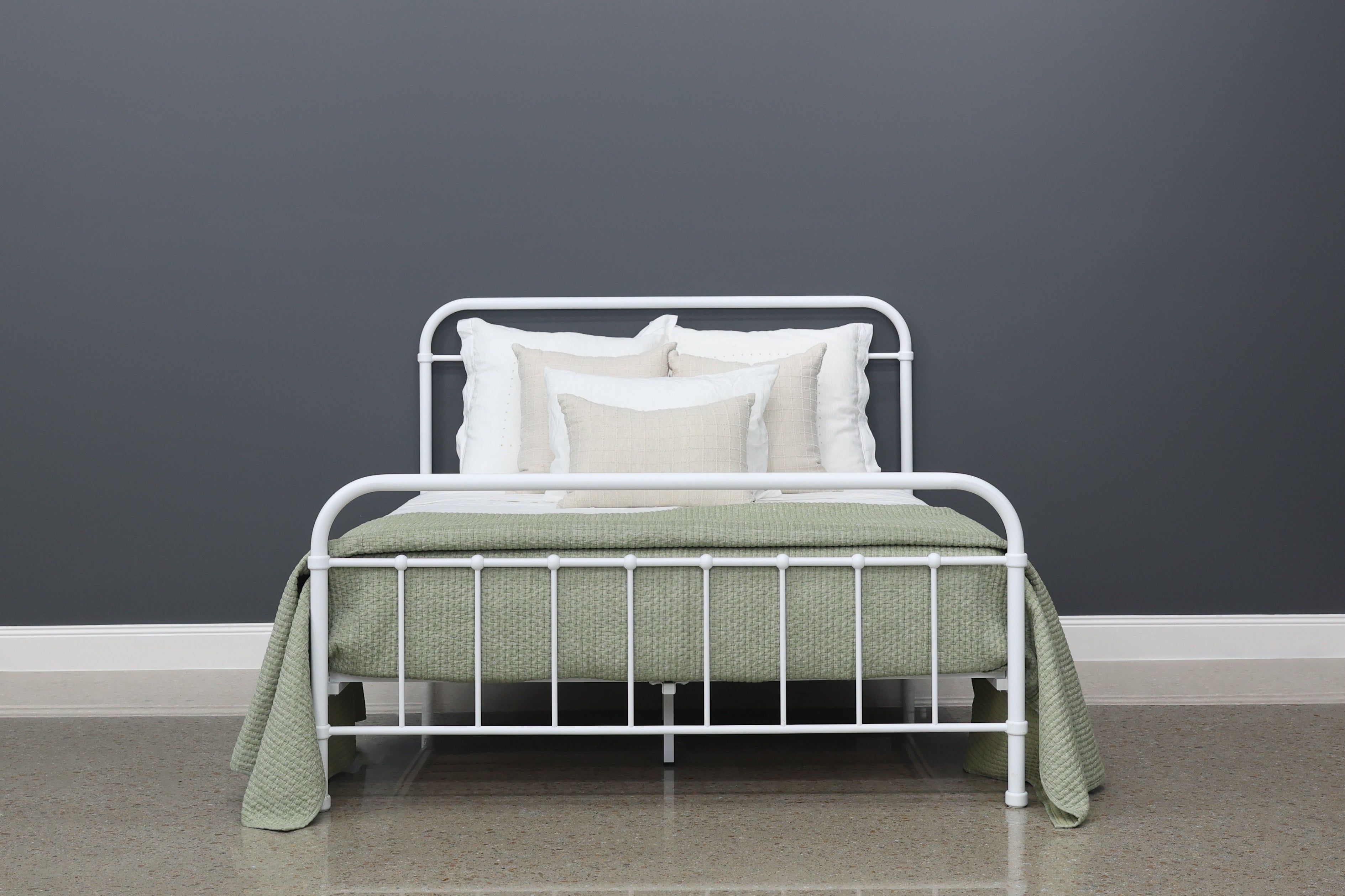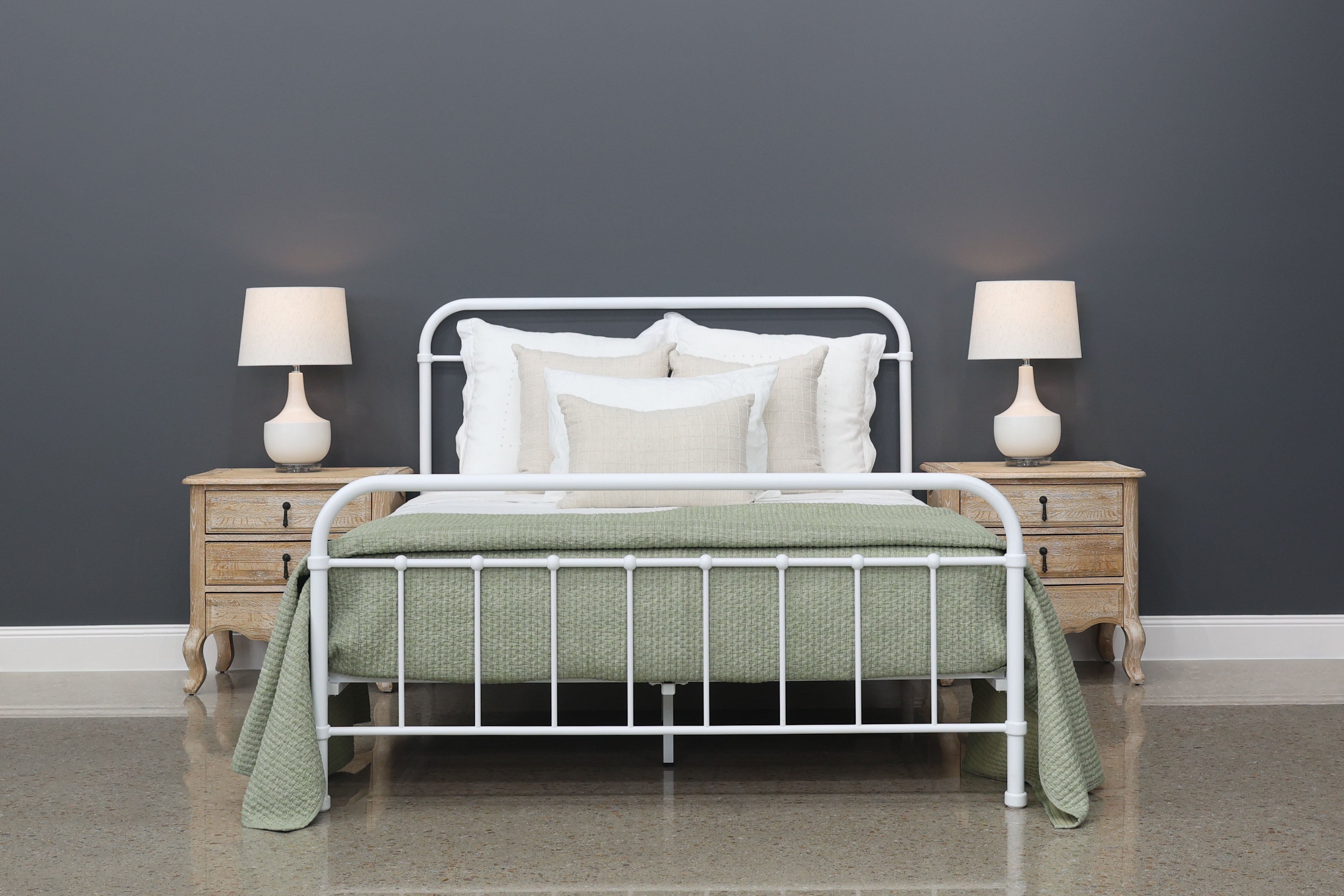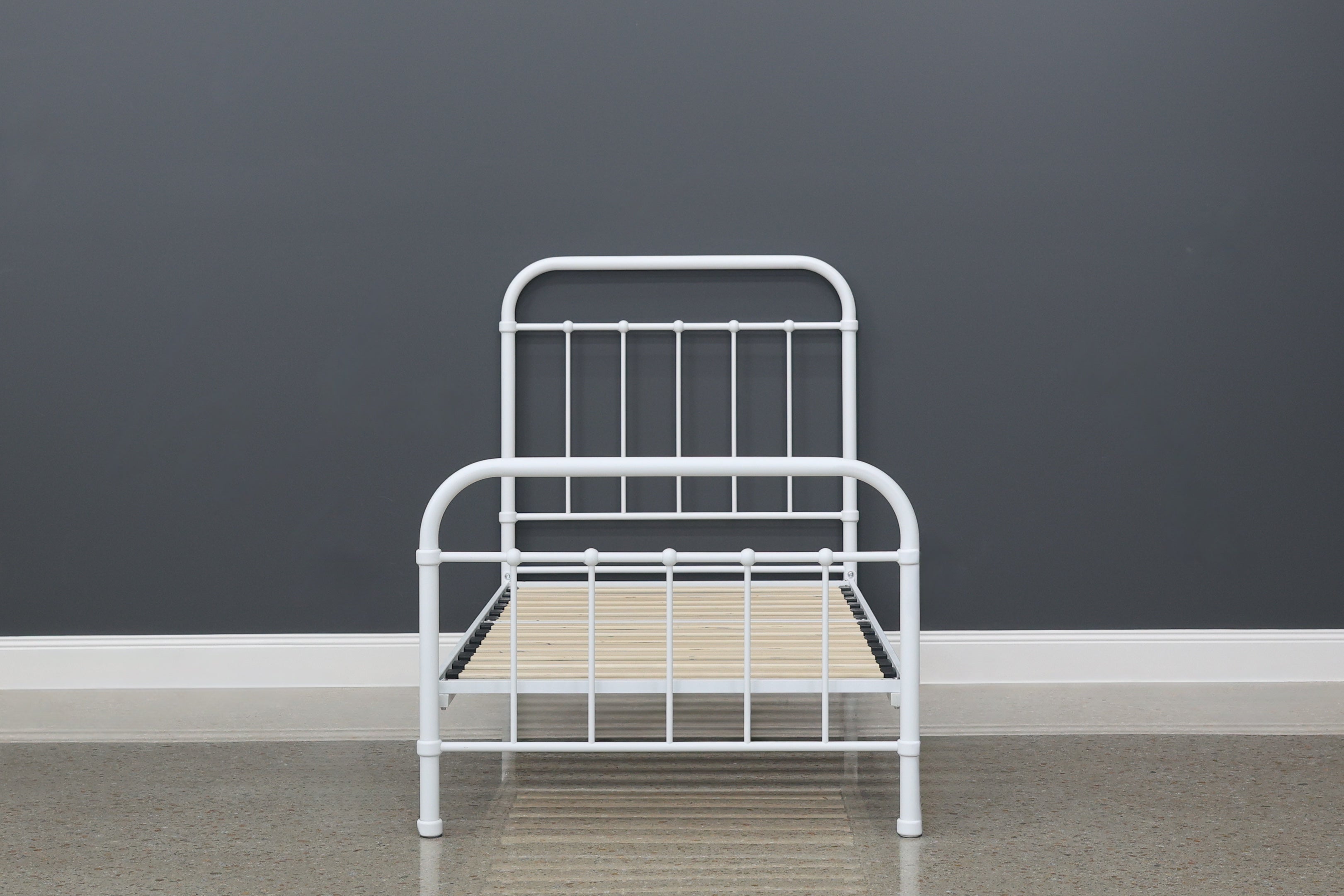 Experience timeless sophistication with the Sydney Bed. Its elegant, versatile design features an open head and foot to create a light, airy feel that pairs effortlessly with a range of bedding styles. Graceful curves add a refined touch, while the durable metal tube frame and plywood posture slats provide exceptional support and long-lasting quality.
