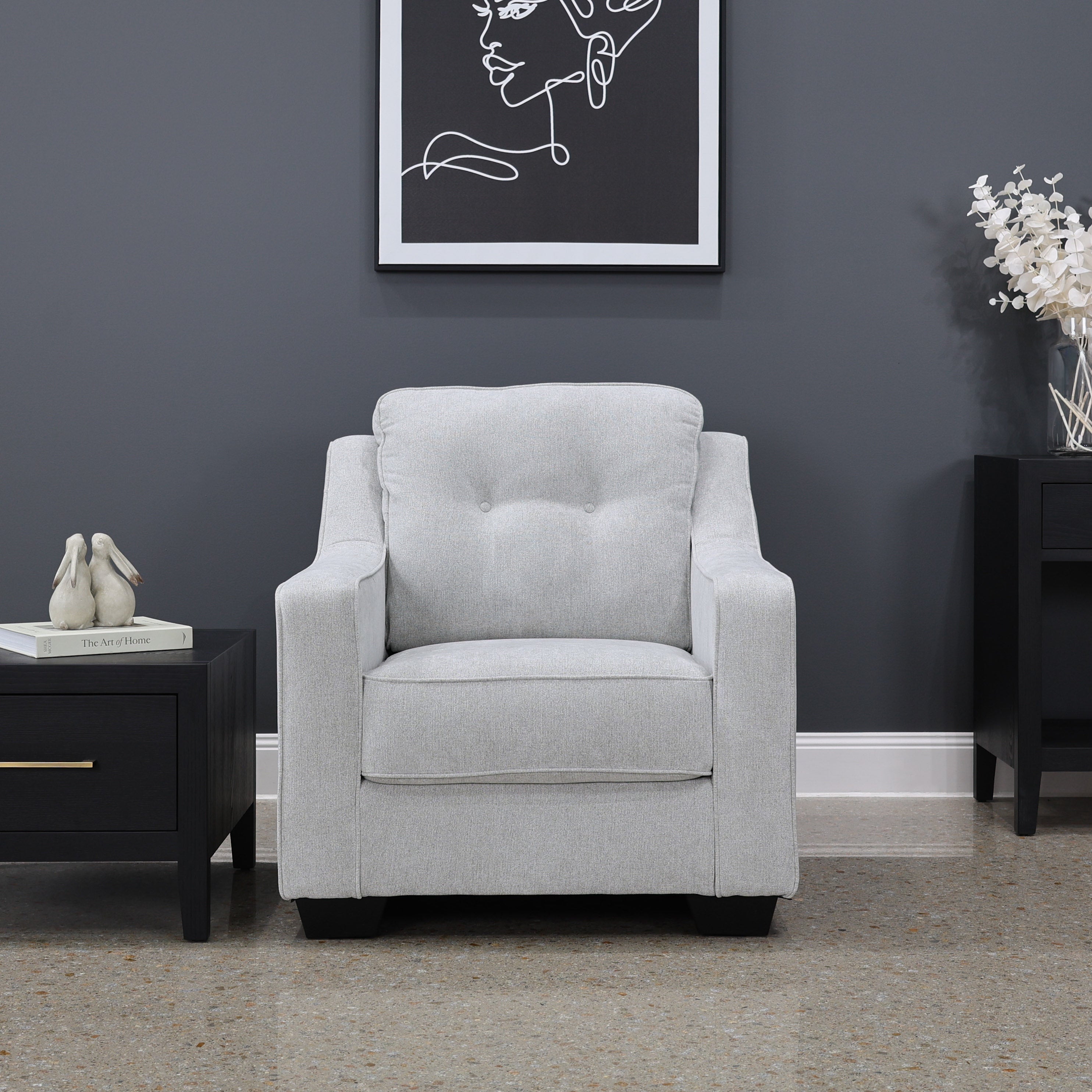 The Victoria Armchair in Light Grey offers a refined balance of comfort and contemporary elegance in a compact, stylish form. Designed to pair seamlessly with the Victoria Sofa and Loveseat, it also makes a confident standalone piece thanks to its soft, light grey fabric upholstery and plush cushioning. Whether you're curling up with a book or simply unwinding at the end of the day, this armchair brings understated sophistication to any space. With its durable build and timeless design, the Victoria Armchair is a versatile choice for both modern and classic interiors.