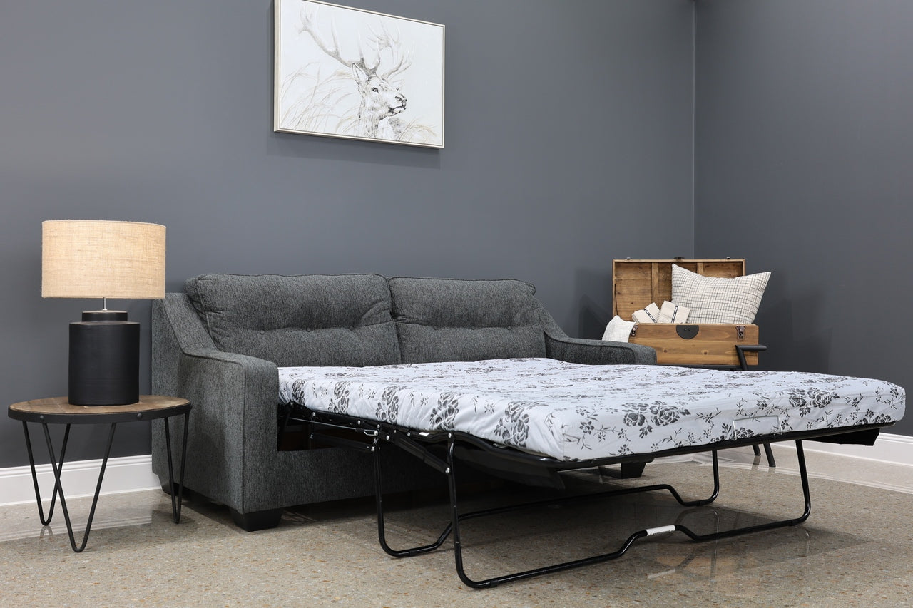 The Victoria Queen Sofa Sleeper in Dark Grey fabric is the ultimate blend of style, comfort, and versatility. By day, it offers the same timeless look and cosy seating as the rest of the Victoria Sofa. By night, it easily transforms into a spacious queen-sized bed with a supportive innerspring mattress—ideal for accommodating overnight guests without sacrificing your home’s aesthetic. Upholstered in soft, breathable dark grey, it delivers a luxurious feel that’s both durable and easy to maintain. Whether for everyday lounging or unexpected sleepovers, this sleeper sofa adds a functional, sophisticated touch to your space.