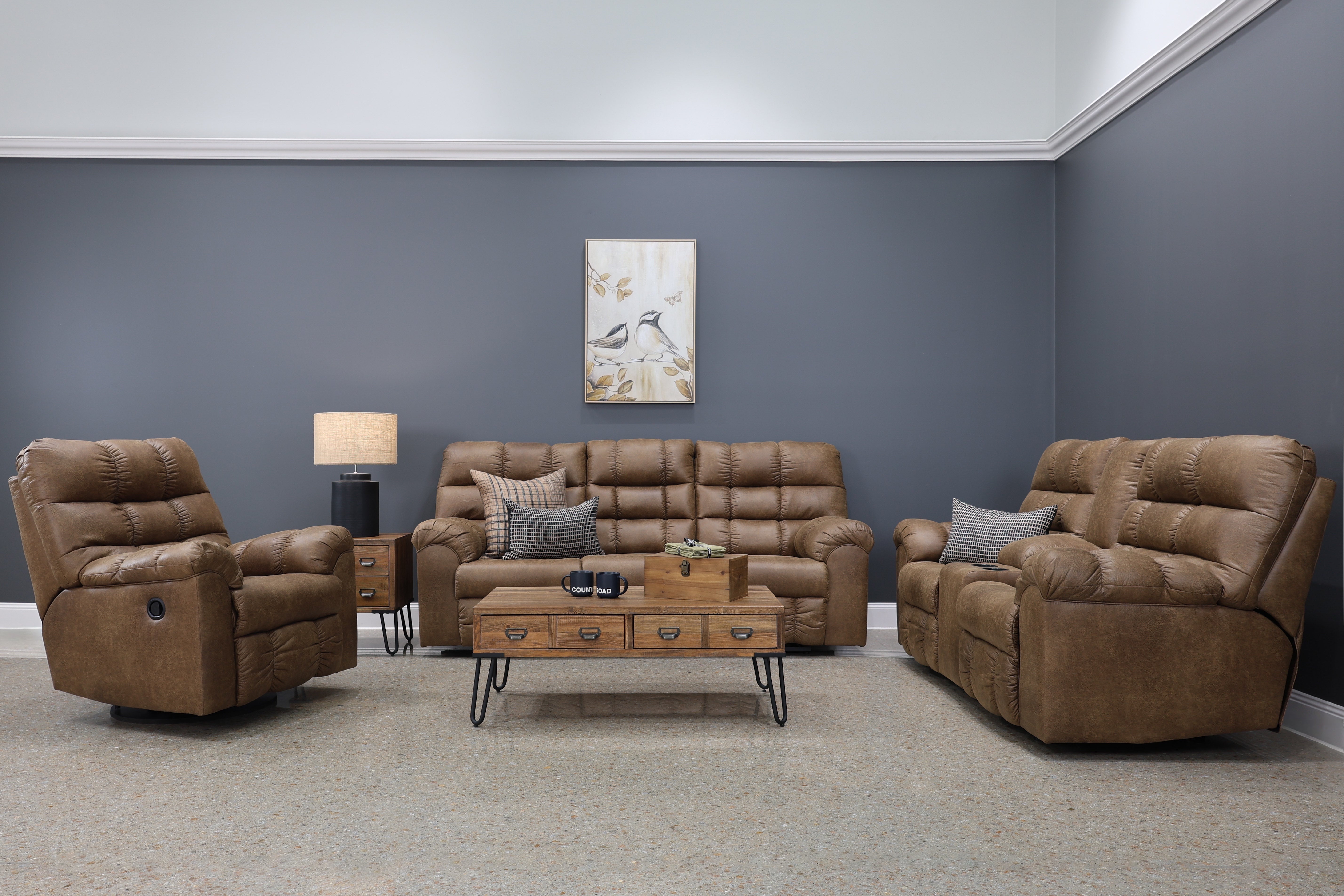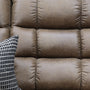 Sink into cloud-like comfort with the Waldara Reclining Sofa, a perfect blend of plush relaxation and smart functionality. Upholstered in a rich, brown leather-look fabric, this sofa boasts deep channel-tufted cushioning from top to bottom, providing supportive padding in every position.