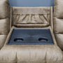 The centrepiece is a versatile drop-down table that reveals dual cup holders and a soft pouch for convenient storage, ideal for keeping remotes, magazines, or snacks within reach during movie night.