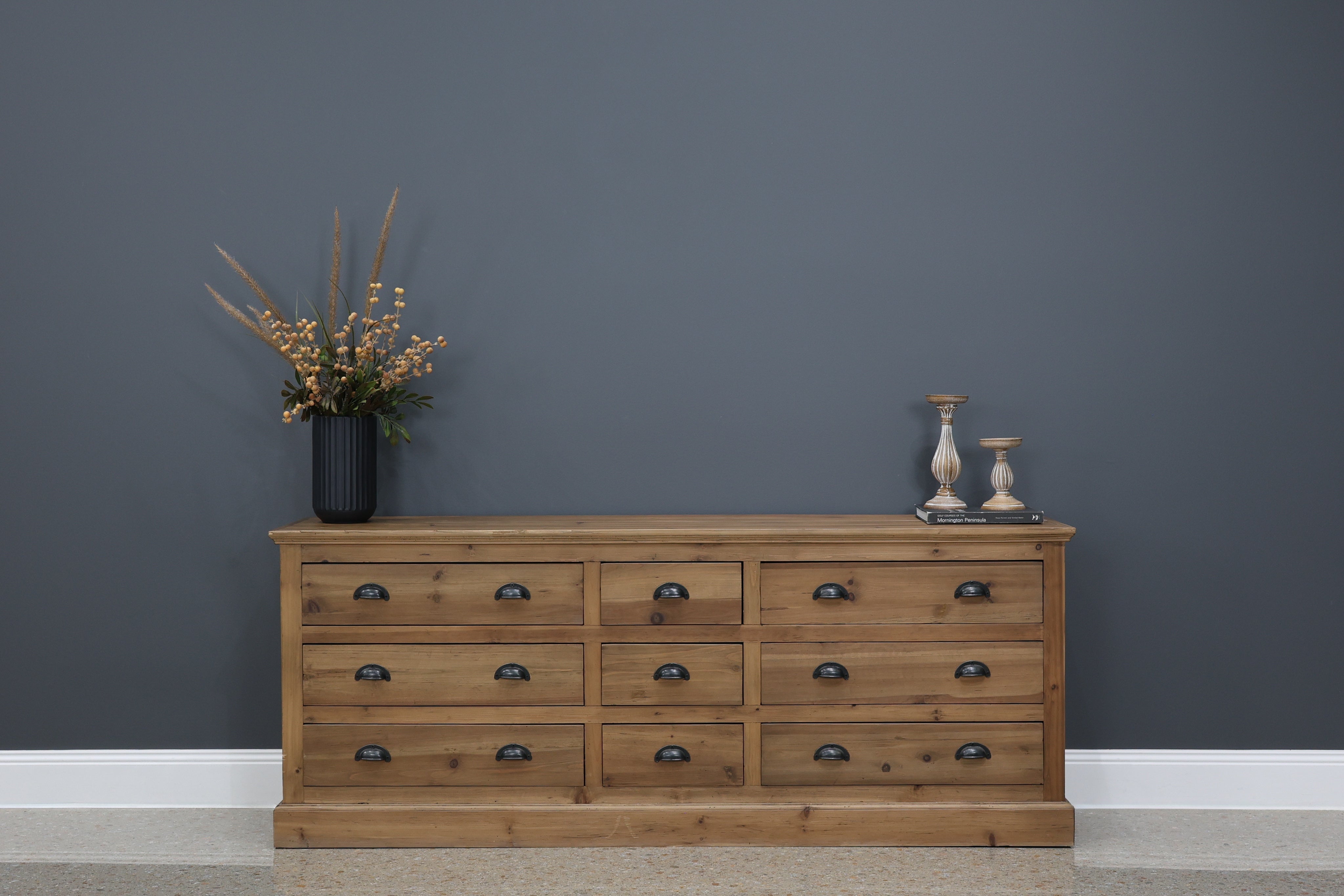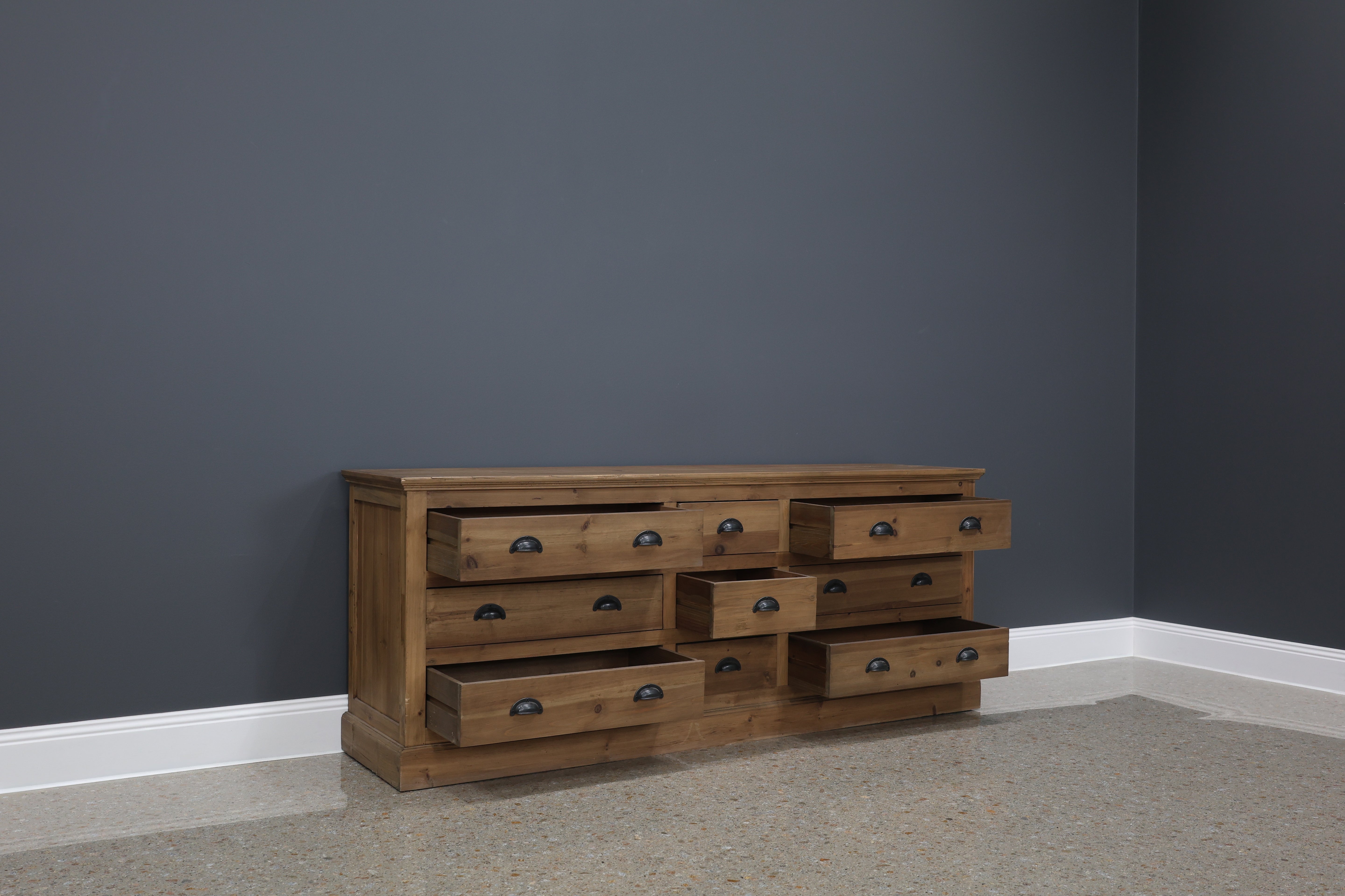Discover the beauty of simplicity and elegance with the Warby Buffet. This rustic masterpiece is meticulously crafted from reclaimed wood, making it a sustainable and stunning addition to your home. With nine spacious drawers, it offers ample storage for your essentials, making it the perfect choice for any room in your house.