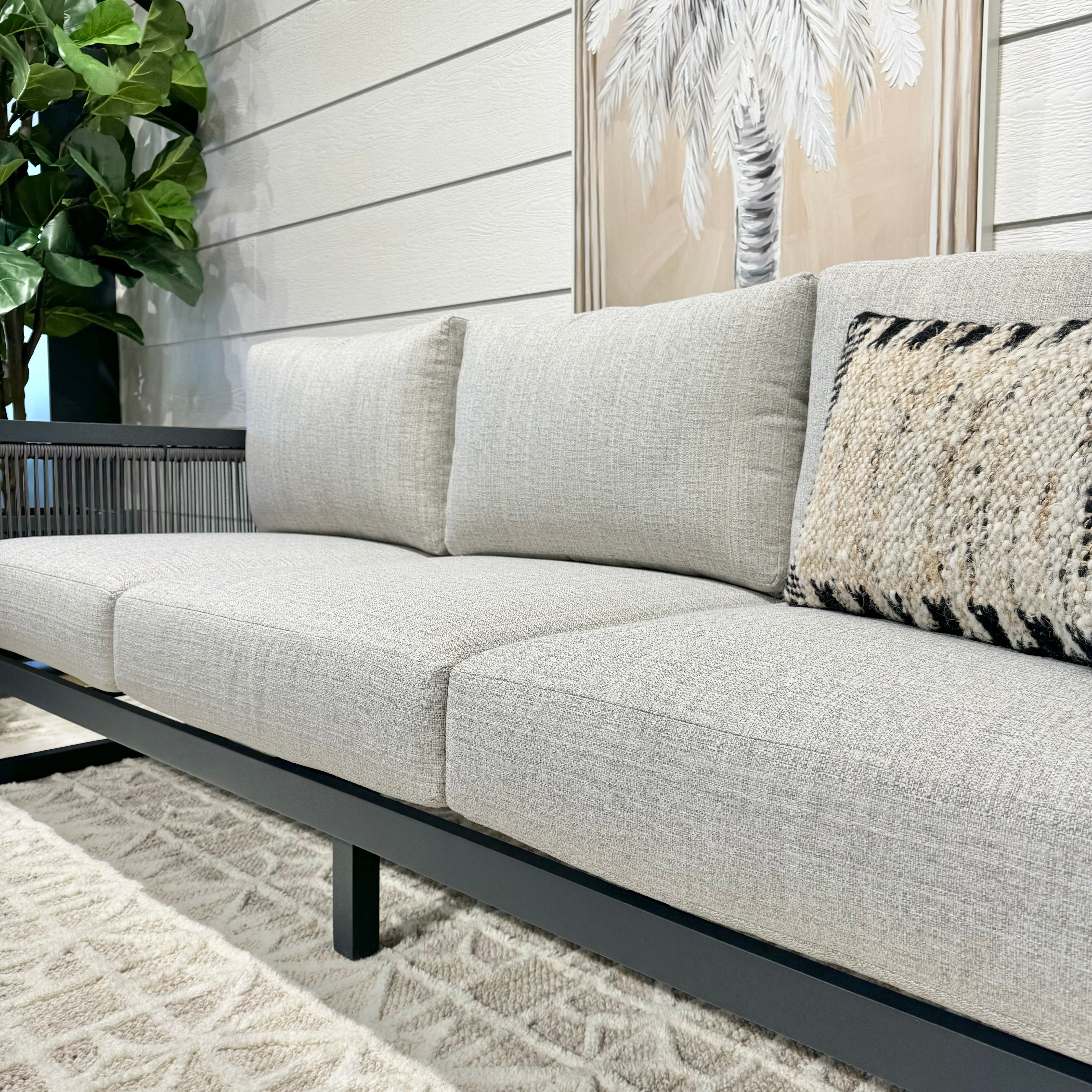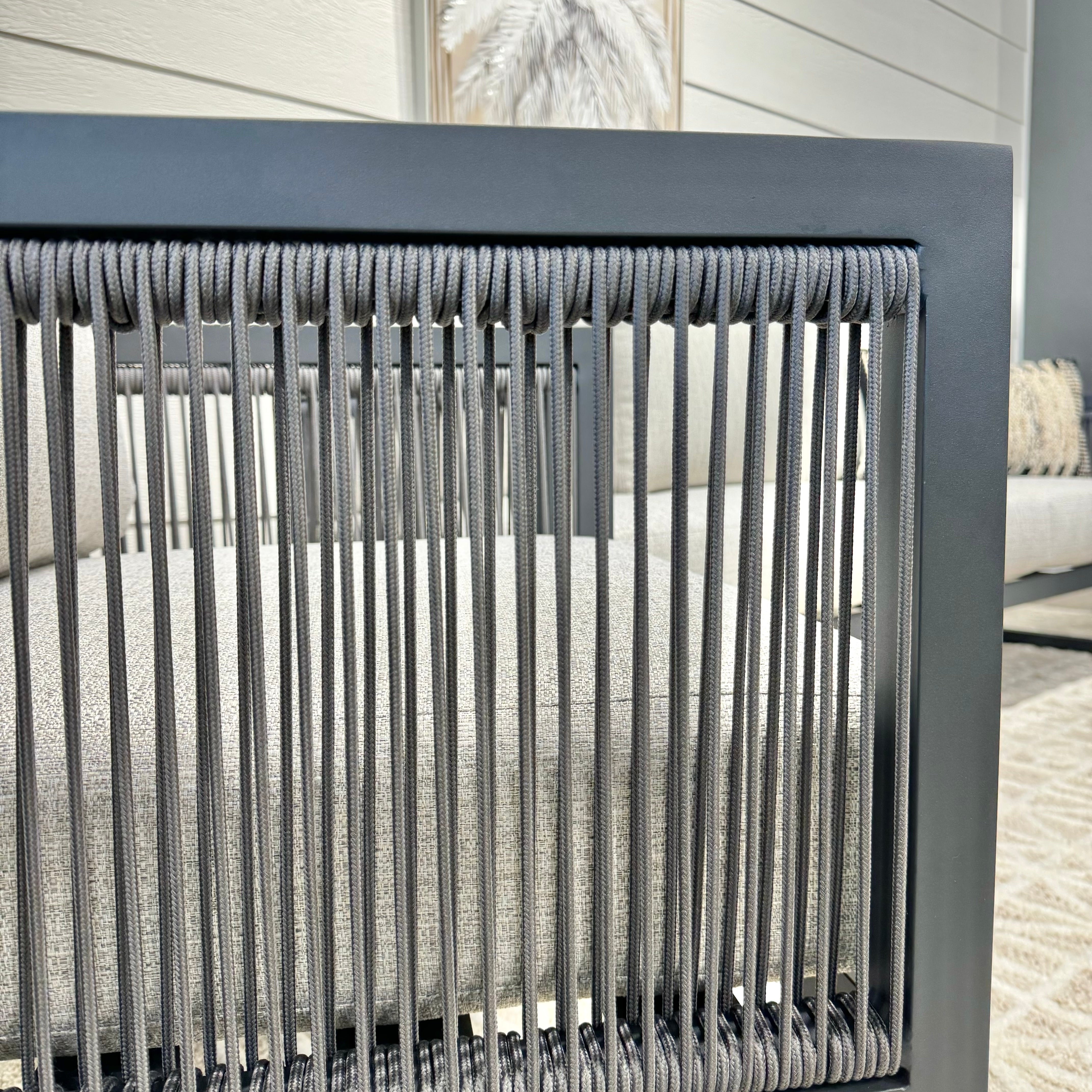 Discover the ideal blend of modernity and elegance with the Yarrawonga 4 piece outdoor lounge suite, providing a minimalist yet stylish living experience for your perfect home. Featuring Olefin fabric cushions and a stylish rope & aluminium design. Complement any outdoor entertainment area whether its contemporary, coastal, Country or an industrial-themed space.