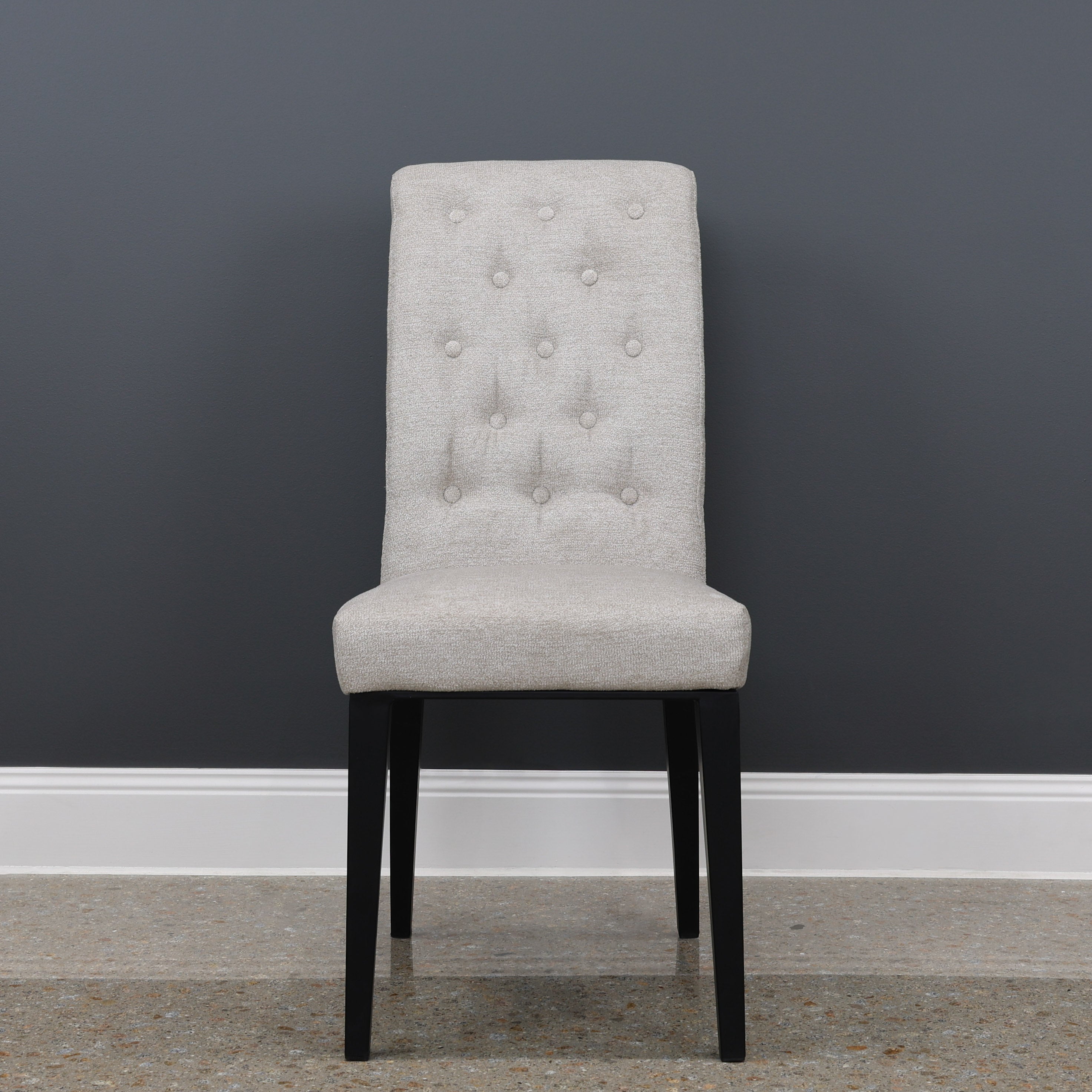 The Yenda Dining Chair in Beige Fabric combines elegance and comfort, making it a perfect addition to any dining setup. The chair features a high, gently curved backrest adorned with a tufted button design for a sophisticated touch. Upholstered in a soft beige fabric, the chair exudes warmth and versatility, complimenting various interior styles.